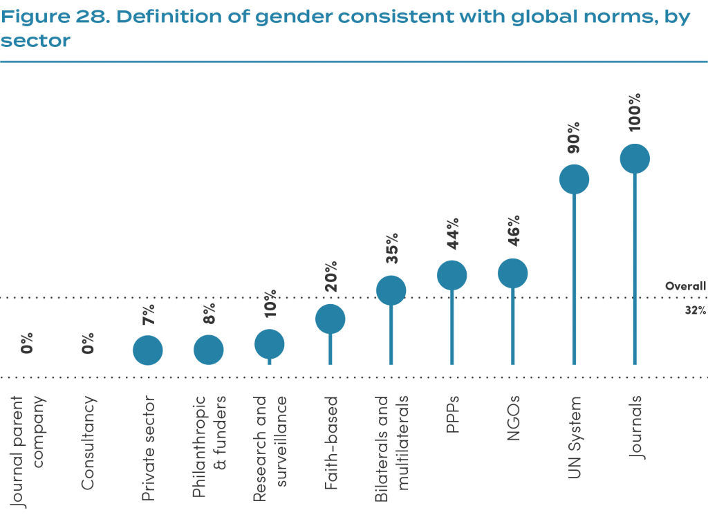 2.1 Global organisations active in health should adopt definitions of gender and gender equality that are consistent with global norms.