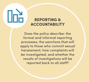 A comprehensive policy is a fundamental first step towards preventing and addressing sexual harassment. Best practices on preventing sexual harassment are still in development and there is a limited set of practices on which to draw that have proven effective over the medium or long term.