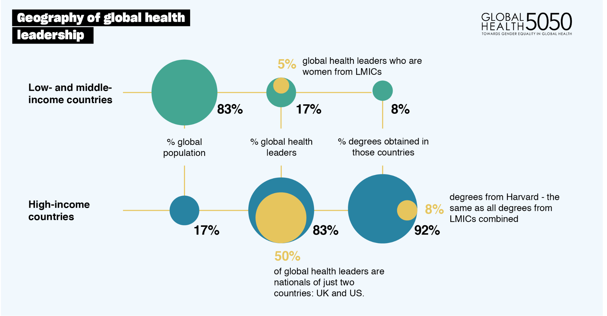 This is not the case. Over 80% of global health leaders are nationals of high-income countries, and over 90% of whom completed their education in these economically rich countries.