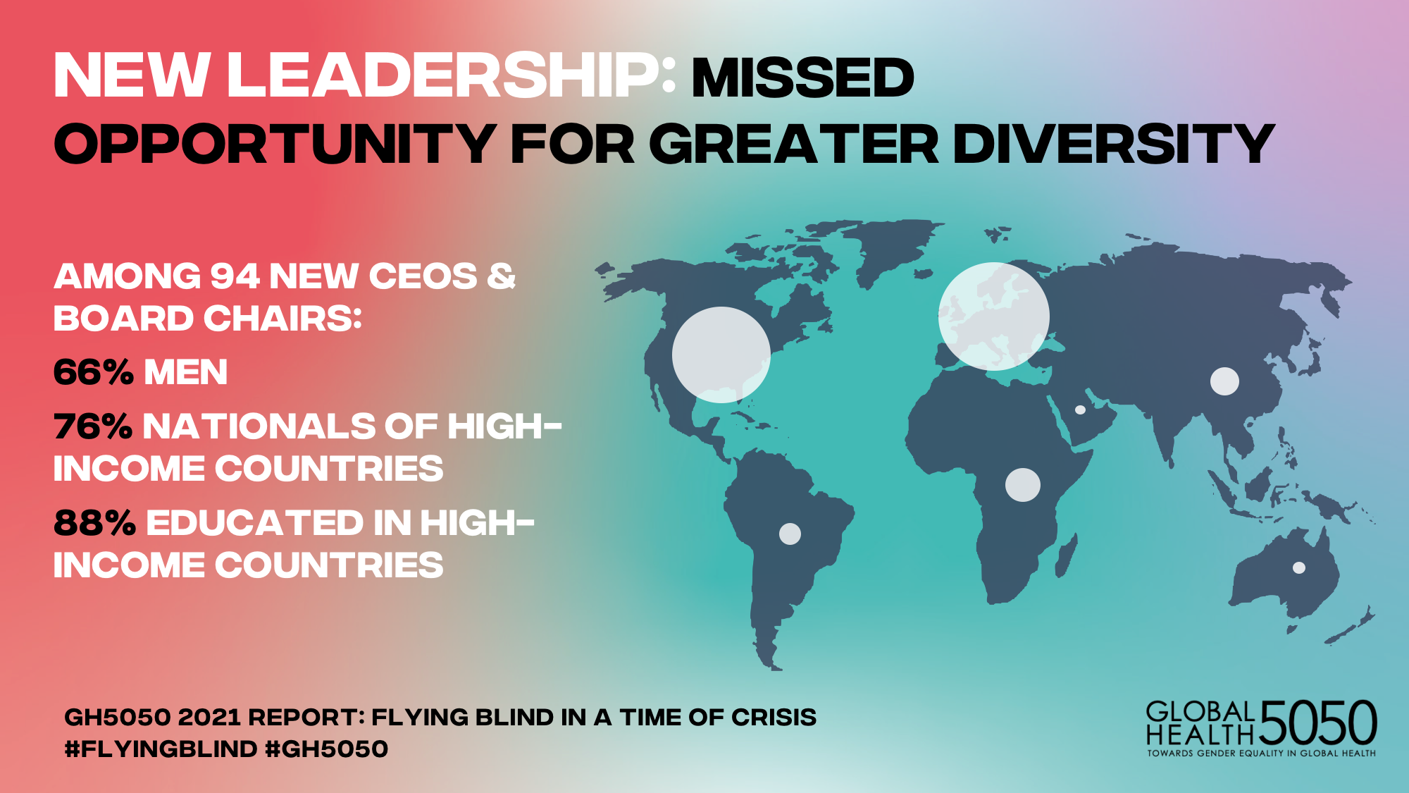 Flying Blind also reports the appointment of yet another cohort of mostly male global health leaders, predominantly from high-income countries, with the mandate to exert influence over the health and wellbeing of people worldwide. Despite substantial rhetoric, the data reveals little progress towards gender equality and diversity in leadership across the health sector and no progress on closing the gender pay gap among UK organisations mandated to report on it.